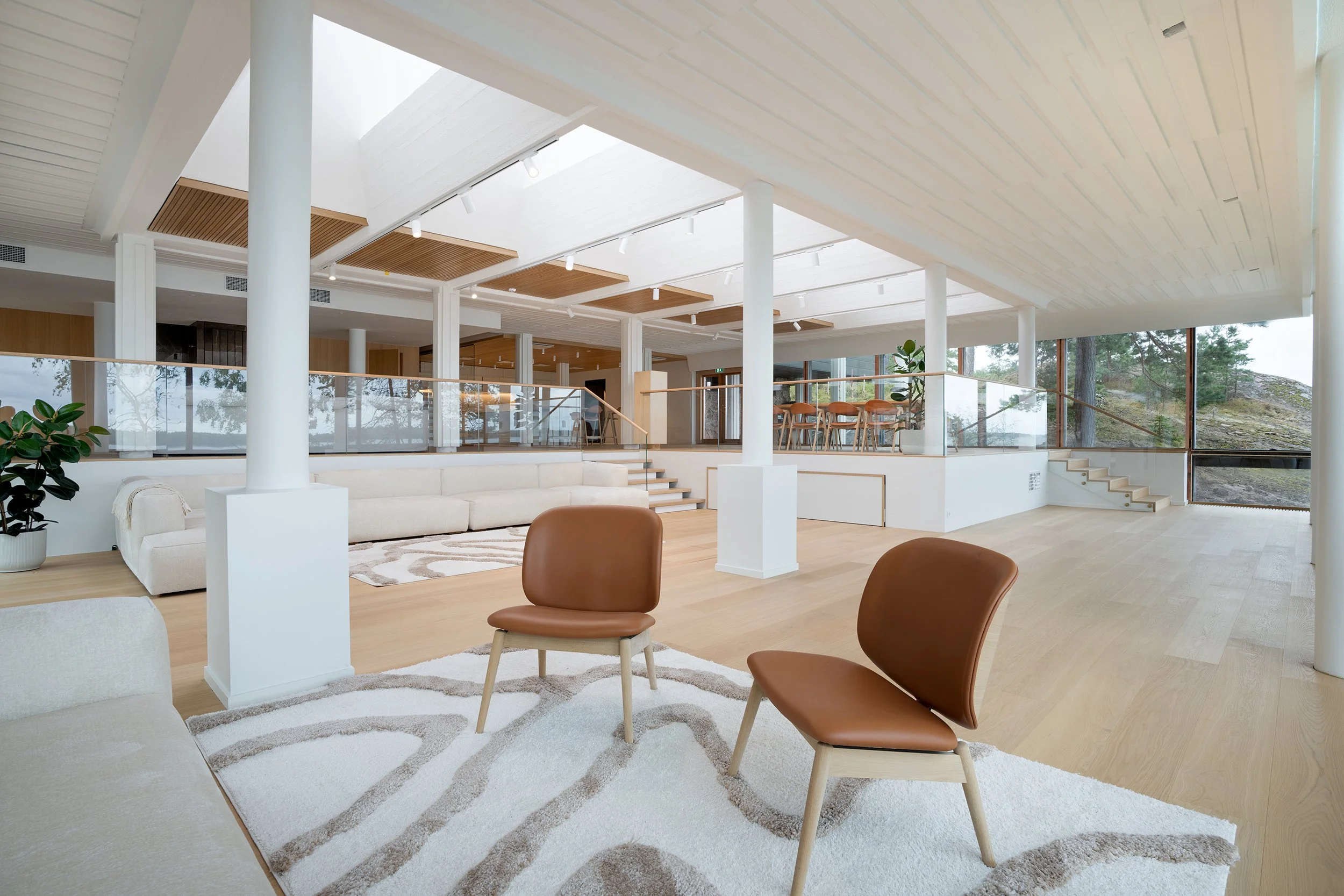 Rento oleskelutila, jossa mukavat sohvat ja takka luovat lämpimän tunnelman. Täydellinen verkostoitumiseen, keskusteluihin ja vapaamuotoisiin hetkiin ohjelman lomassa.